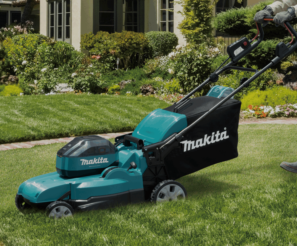With a 380 mm cutting width and a 36V motor (2×18V batteries), the Makita DLM382Z delivers up to 3,700 rpm for clean, efficient cuts—even in thick grass. Most domestic lawns can be mowed on a single charge, depending on battery capacity.